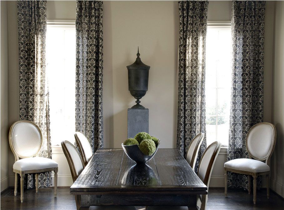 7. Color rocks your world. Patterns and rich colors work especially well in spaces like dining rooms, which might otherwise be all wood. The color plays against the plainer table, chairs, and sideboard. Rooms that don’t have a lot of upholstery or texture really welcome the oomph of a strong window treatment, and so do rooms most often used after dark. A bold hue offers more privacy at night than a sheer, especially for bedrooms.